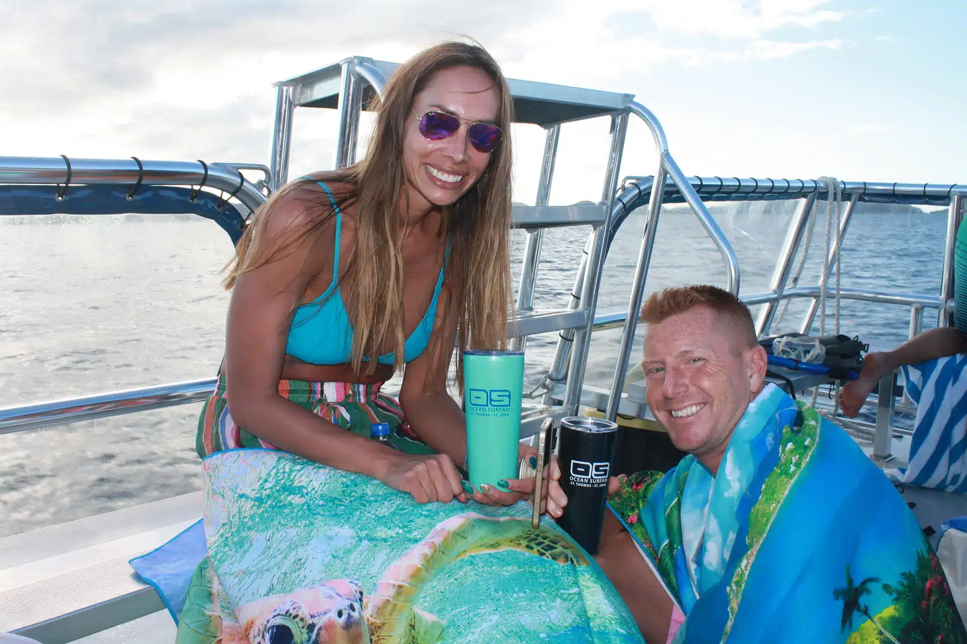Reef Surfari will depart at 9:30 a.m. from the dock at American Yacht Harbor in Red Hook on St. Thomas and then swing over to Cruz Bay to pick up our St. John guests at 10:00am. We will then head to two different snorkeling spots to look for sea turtles, beautiful corals and a plethora of tropical fish. We will offer a light snack and have an open bar with rum punch, painkillers, cold beers, sodas and water as well as light snacks for your refreshment after snorkeling. Alcohol is served beginning at the second snorkel spot once you are finished swimming. After snorkeling, we will return to St. John to drop off our guests at 12:30 and then back to St. Thomas at 1:00.